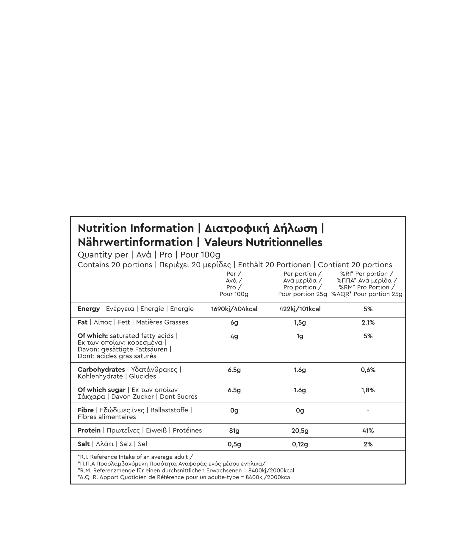 ✔ Καθαρότητα και Φυσική Προέλευση: Χωρίς πρόσθετα, μόνο αγνή πρωτεΐνη